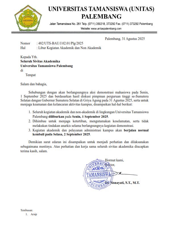 PENERIMAAN MAHASISWA BARU TAHUN AKADEMIK 2025/2026 UNIVERSITAS TAMAN SISWA PALEMBANG